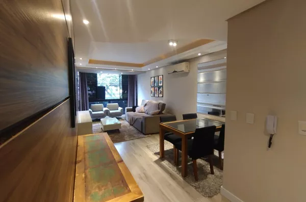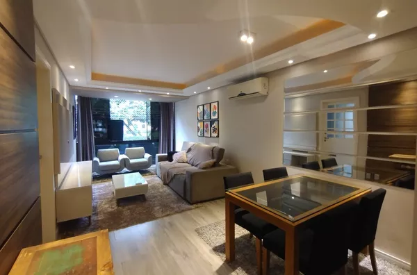 INNOVE IMÓVEIS -- VENDE -- Impecável apartamento MOBILIADO E DESOCUPADO - 2 dormitórios, hall de entrada, amplo living 3 ambientes com sacada integrada, rebaixamento em gesso com luz direta e indireta, copa cozinha montada, área de serviço separada, banheiro com ventilação e luz direta, garagem coberta para 2 automóveis com depósito individual, excelente localização, junto ao Zaffari Higienópolis e próximo a todos recursos do bairro, baixo valor condominial, pronto para morar. Prédio pequeno com poucas unidades, ajardinado e de excelente apresentação. OBS: A MOBILIA DO IMÓVEL ESTÁ AVALIADA EM APROXIMADAMENTE R$60.000,00. AGENDE COM NOSSA EQUIPE E APROVEITE ESSA OPORTUNIDADE.